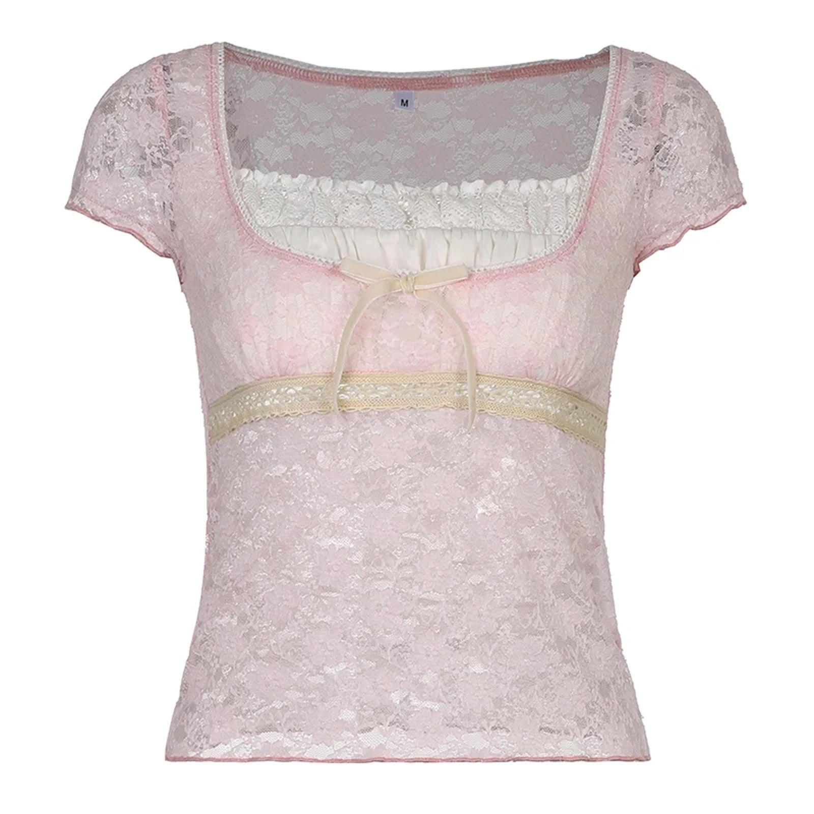 Coquette Lace Milkmaid Top Tees Y2K Aesthetic Fairy Grunge Square Collar Tees Prepply Korean Kawaii T-shirt Women Cropped Tops