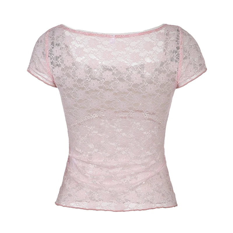 Coquette Lace Milkmaid Top Tees Y2K Aesthetic Fairy Grunge Square Collar Tees Prepply Korean Kawaii T-shirt Women Cropped Tops